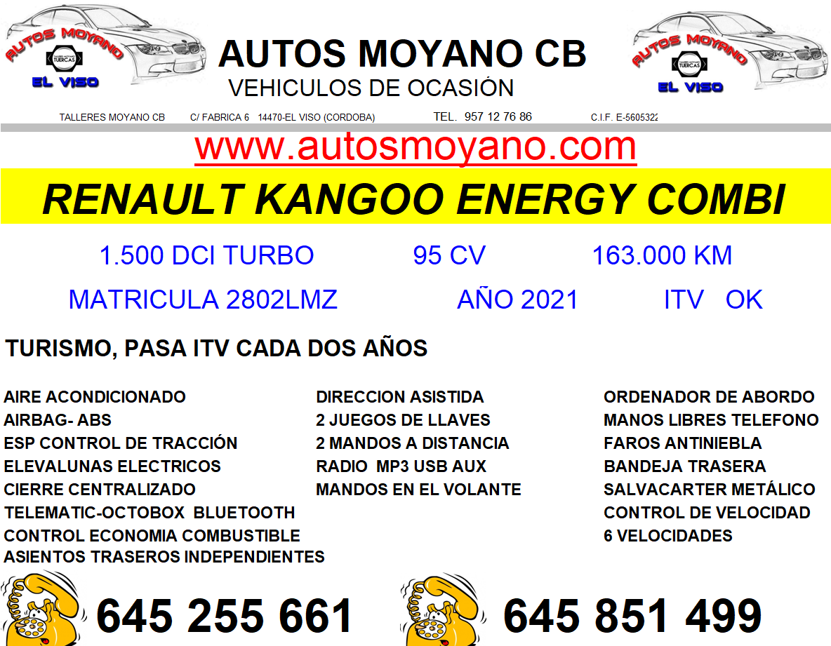 - Modelo: RENAULT KANGOO COMBI